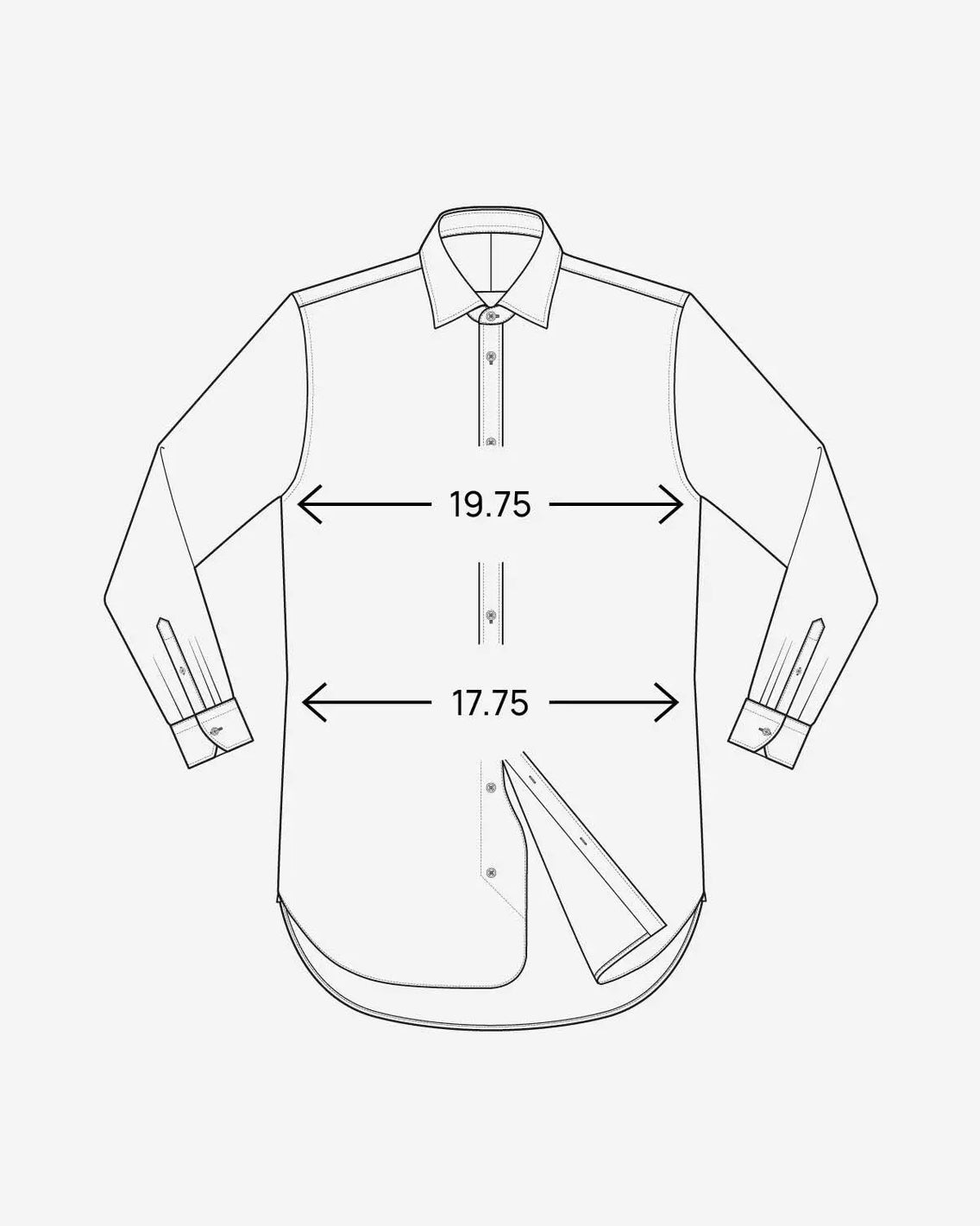 Long sleeve length | 36.25 | 36.6 | 37 | 37.5 | 37.75 | 38.2 | 38.5 | 38.75 | 39 |